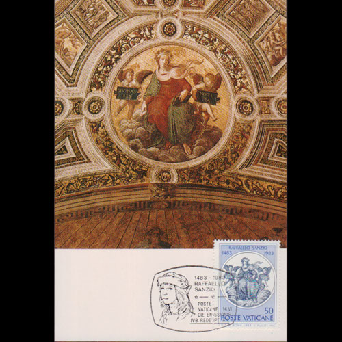 | 说明:贴拉斐尔教堂穹顶画(50l)。拉斐尔头像首日纪念戳。 |
