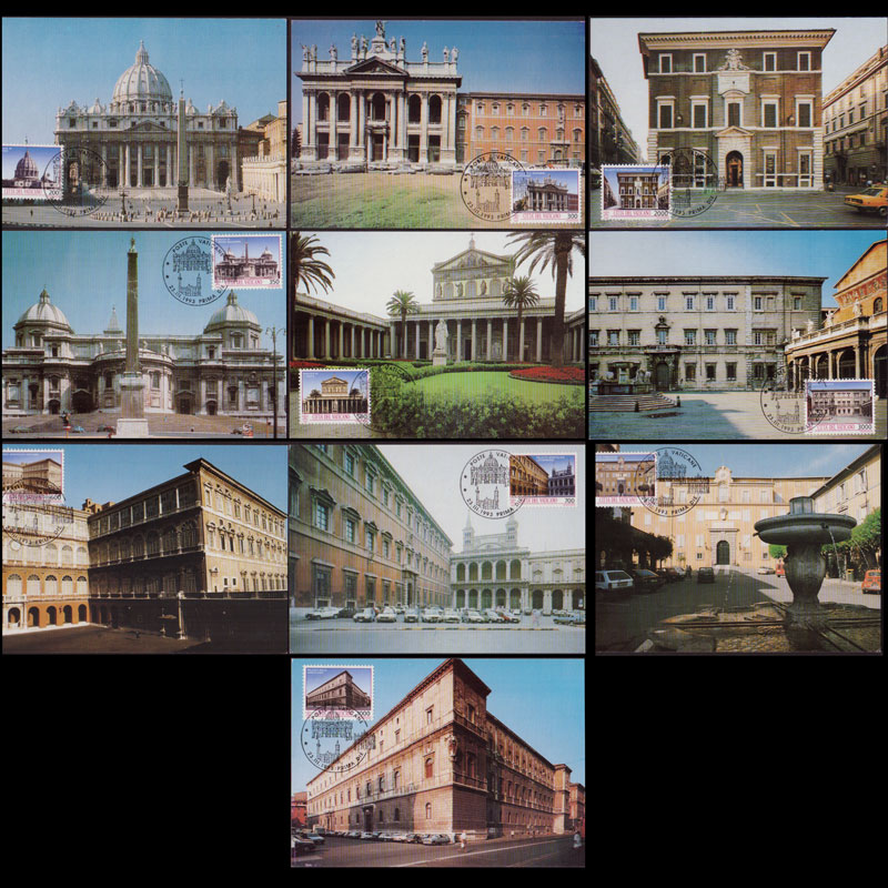| 说明:贴梵蒂冈和罗马著名建筑10全。首日纪念戳。共10枚。 |