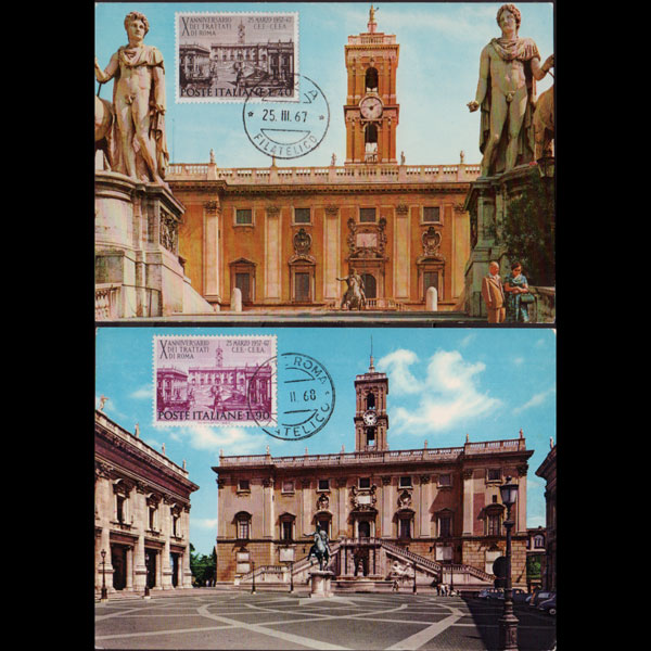 | 说明:贴欧共体条约-议会大厦2全。首日纪念戳。共2枚。 |