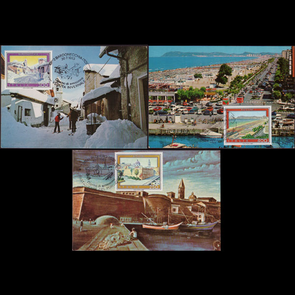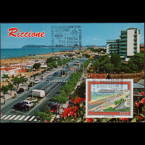 | 说明:贴旅游-里乔内海滨风光(400l)。销风光图纪念戳RICCIONE 29.8.83。背面OBERBRAY到达戳。 |