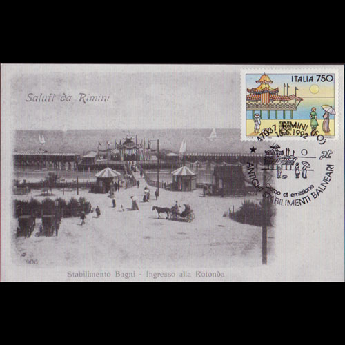 | 说明:贴海滨休养胜地(750l)。首日纪念戳。 |