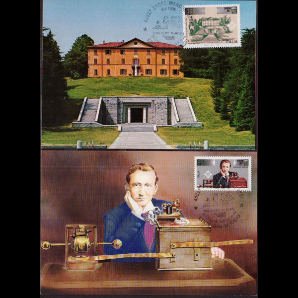 | 说明:贴无线电百年-马可尼和故居2全。首日纪念戳。共2枚。 |