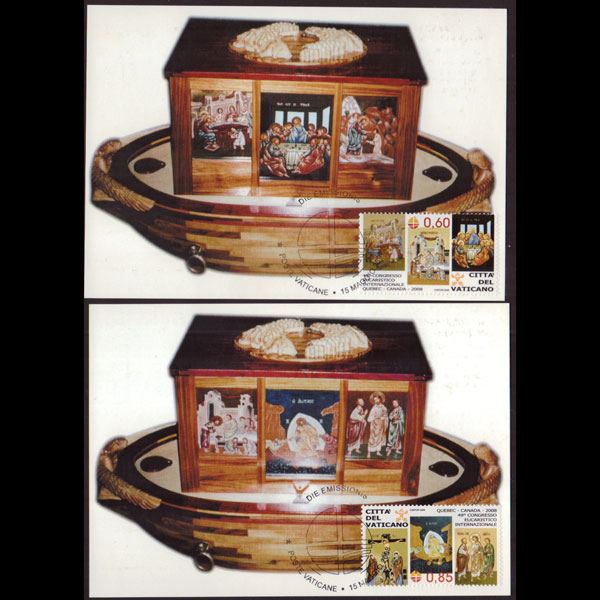 | 说明:贴魁北克圣餐会-最后晚餐等2全。首日纪念戳。 |