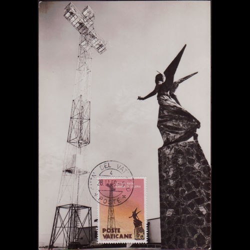 | 说明:贴同年发行教廷广播电台-发射塔(25l)。 |