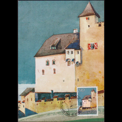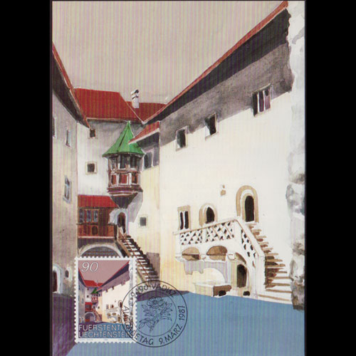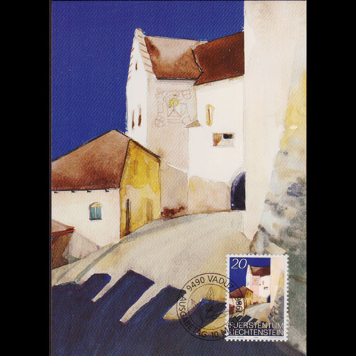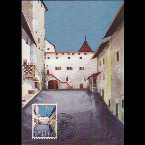 | 说明:贴瓦杜兹城堡风光(90r)。首日纪念戳。 |