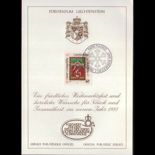 | 说明:贴圣诞节-福音书插图(60r)。首日纪念戳。 |
