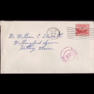 | 说明:贴1949年DC-4空中霸王运输机。销CHICAGO圆戳。KITTERY到达戳。 |
