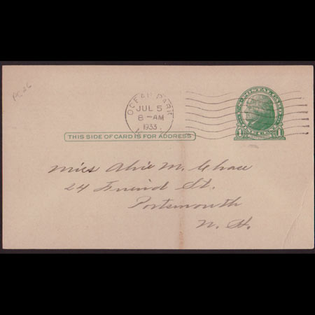 | 说明:杰斐逊总统(1c)。销ELGIN星条旗日戳和PORTSMOUTH到达戳。 |