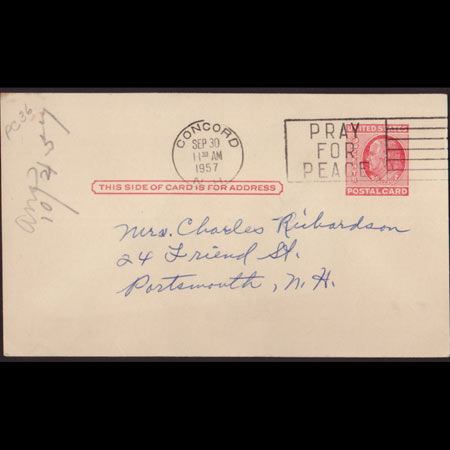 | 说明:富兰克林(2c)。销CONCORD/PRAY FORPEACE宣传戳(祈祷和平)。 |
