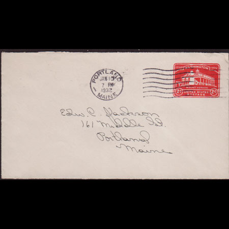 | 说明:斯科特目录编号525。华盛顿故居弗农山庄(2c)。销PORTLAND圆戳无日期。 |