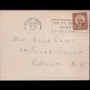| 说明:贴1930年哈丁总统1.5c。销SAINT PAUL/BUYU.S.SAVINGBONDS宣传戳(购买美国债券/咨询当地邮局)。 |