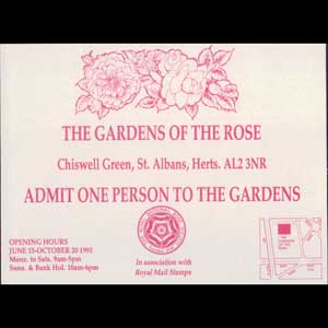 | 说明:玫瑰植物园参观赠券。由皇家邮政集邮部协办。 |