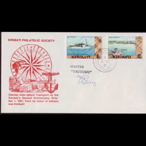 | 说明:基里巴斯集邮协会2周年。贴1979年客轮和码头2枚(3-12c)。 |