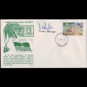 | 说明:基里巴斯集邮协会3周年。贴1982年女王访问1枚(35c)。 |