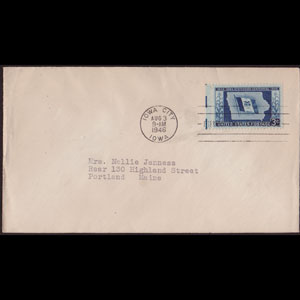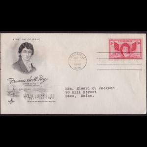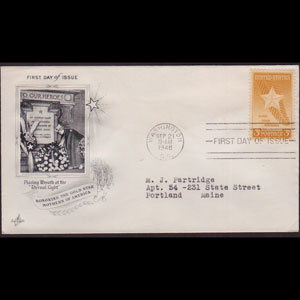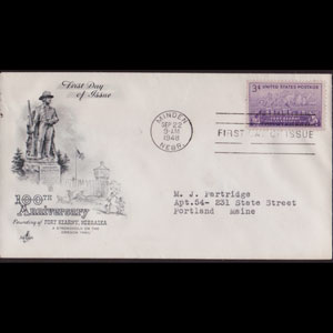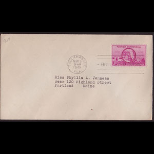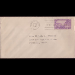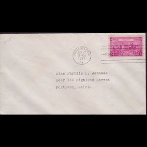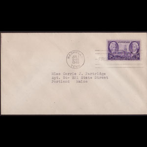 | 说明:全国空邮周。贴1938年白头雕。销KENNEBUNK戳和空邮周纪念戳。背面波特兰首封邮件纪念戳。 |