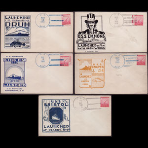 | 说明:海军军舰下水纪念。贴1940年高射炮(2c)。销美国海军1941年邮戳。左侧图为潜水艇和驱逐舰等下水舰只。 |