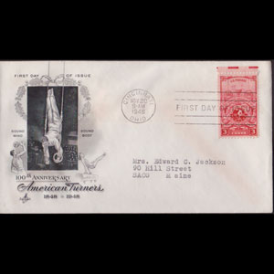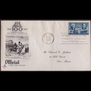 | 说明:纪念空邮20年。贴1938年白头雕。销LYNN市戳和美国邮政部纪念戳。背面波士顿机场到达戳和通用电气公司空邮首航戳。 |