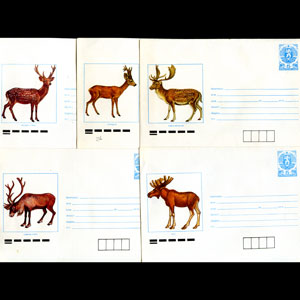 | 说明:邮资图国徽。附图鹿。全套5枚。 |