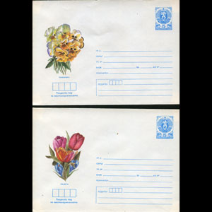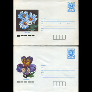 | 说明:邮资图国徽。附图花卉。2枚。 |