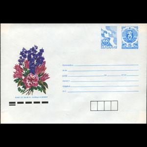 | 说明:邮资图国徽(5s)和鸽图(25s)。附图花卉。 |