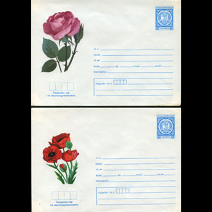 | 说明:邮资图国徽白底。附图花卉-玫瑰花等。2枚。 |