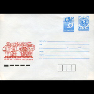 | 说明:邮购图国徽(5s)和号角(25s)。附图城市建筑。 |