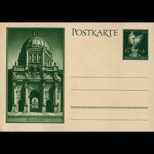 | 说明:邮购图国徽(5s)和号角(25s)。附图大教堂。 |