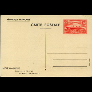 | 说明:纽约世博会-轮船。背面轮船和纽约建筑图。面值1.25f。香槟编号44。目录标价150法郎。角折。 |