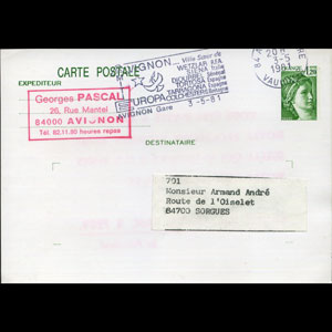| 说明:萨比娜女神(1f). 香槟编号425。加印阿维尼翁汽车俱乐部纪念图。 |