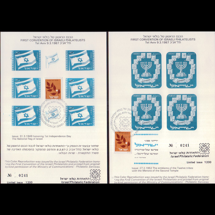 | 说明:1949年国旗和1952年部落徵复制图。邮电部特许为首届全国集邮大会发行。共2枚。 |