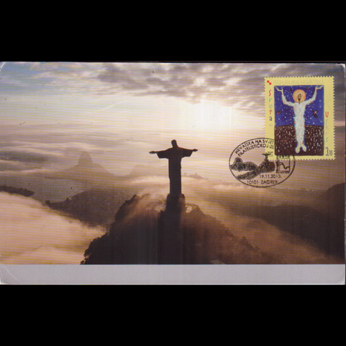 | 说明:贴2010年发行复活节1全。纪念戳19.11.2013。角皱。 |