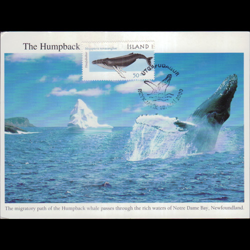 | 说明:贴座头鲸(50k)。首日纪念戳。 |