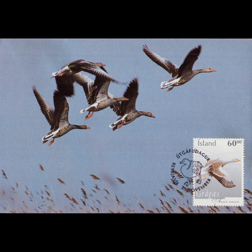 | 说明:贴鸟类-灰雁(60k)。首日纪念戳。 |