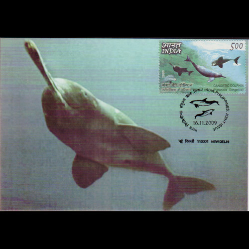 | 说明:贴恒河豚(5r)。首日纪念戳。 |
