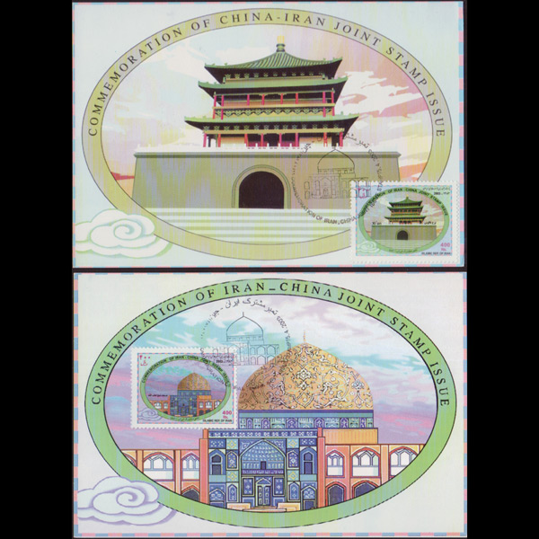 | 说明:贴西安钟楼和伊斯法罕清真寺2全。首日纪念戳。共2枚。 |