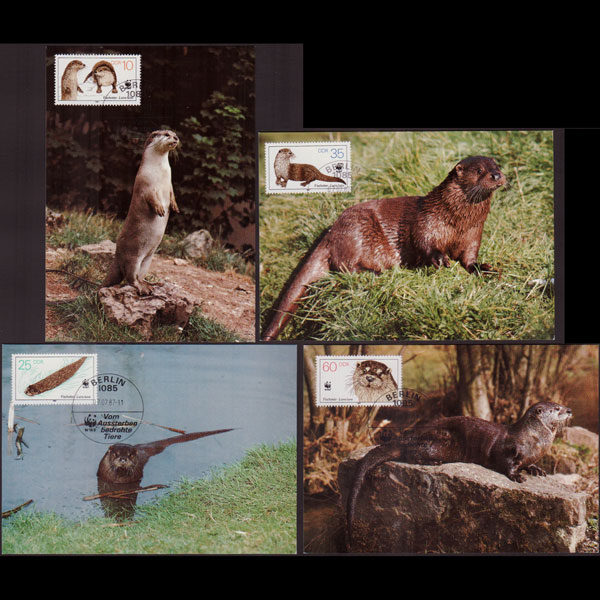说明:贴WWF-水獭4全。首日纪念戳。共4枚。 |