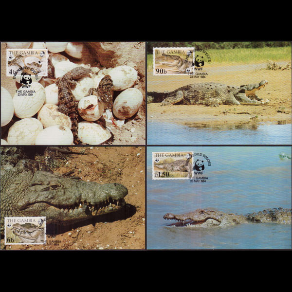 说明:贴WWF-非洲鳄4全。首日纪念戳。共4枚。 |