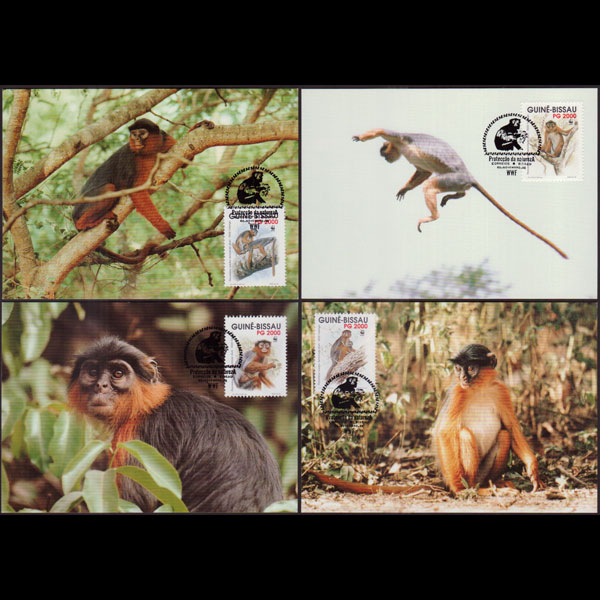 说明:贴WWF-红疣猴4全。首日纪念戳。共4枚。 |