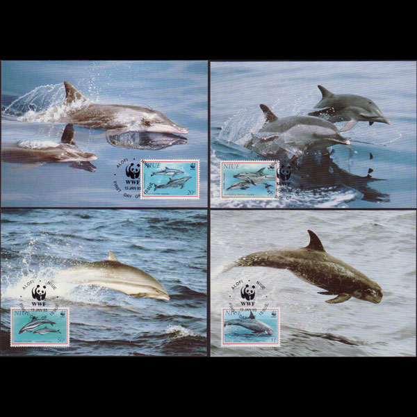 说明:贴WWF-海豚4全。首日纪念戳。共4枚。 |