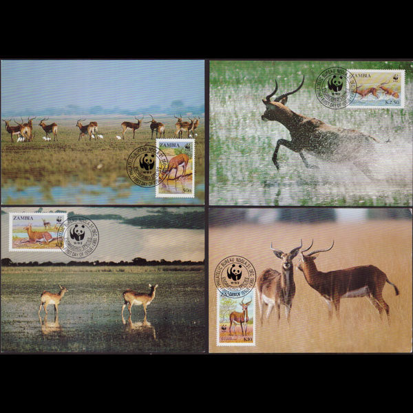 说明:贴WWF-黑短鼻水羚4全。首日纪念戳。共4枚。 |