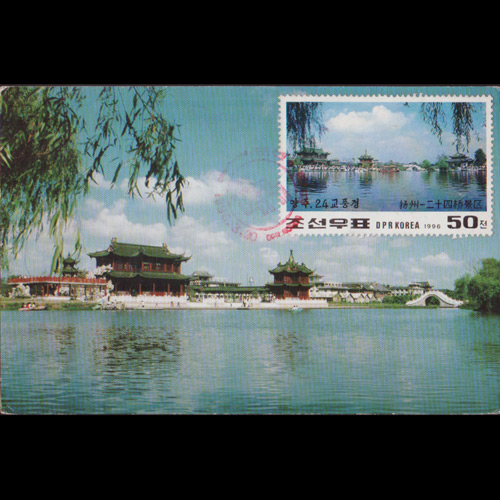 | 说明:贴中国扬州二十四桥景区(50c)。首日纪念戳。 |