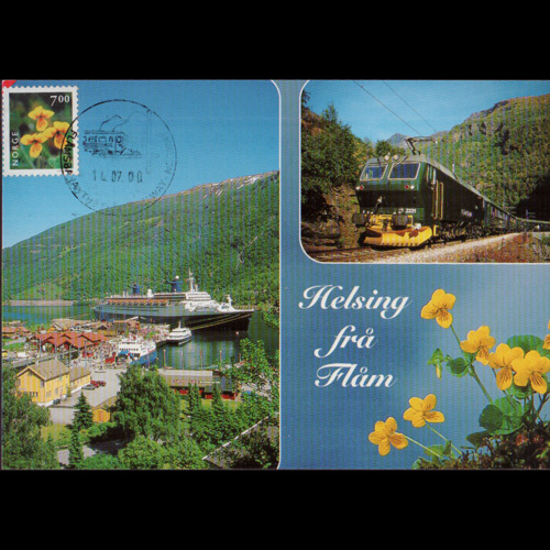 | 说明:贴1999年堇菜花(7k)。山区火车纪念戳14.07.00。 |