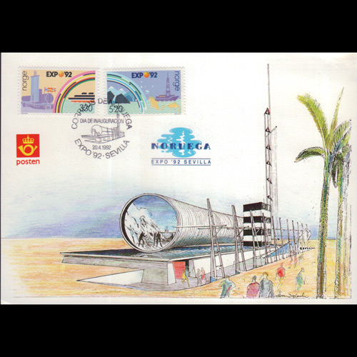 | 说明:贴塞维利亚世博会-建筑2全。首日纪念戳。 |