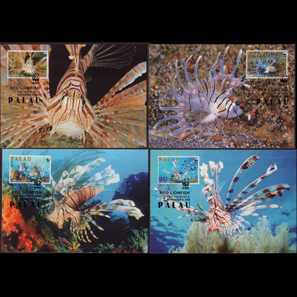 | 说明:贴WWF-红狮子鱼4全。首日纪念戳。共4枚。 |