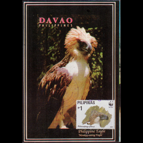 | 说明:贴1991年发行WWF-食猿雕(1p)。日戳不清。 |
