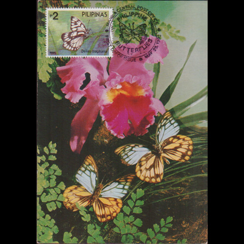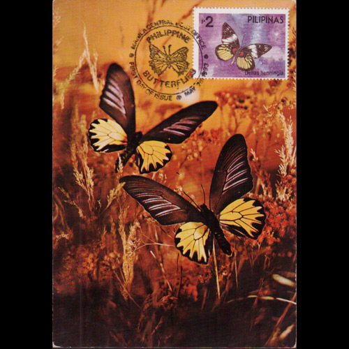 | 说明:贴蝴蝶(2p)。首日纪念戳。 |