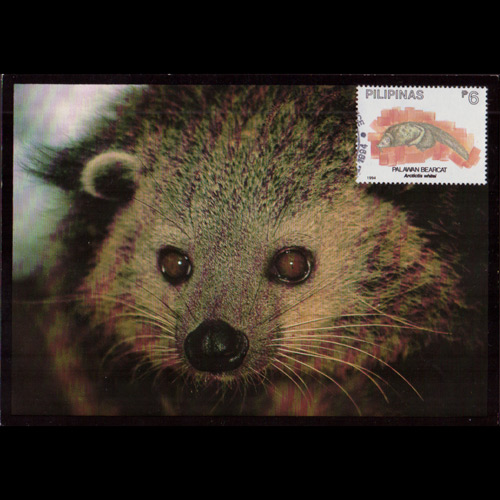 | 说明:贴野生动物-巴拉望熊狸(6p)。首日纪念戳。 |