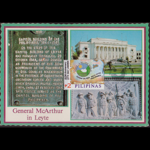 | 说明:贴二战莱特湾登陆50年(2p)。首日纪念戳。 |