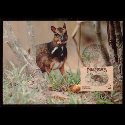 | 说明:贴野生动物-鼷鹿(2p)。首日纪念戳。 |