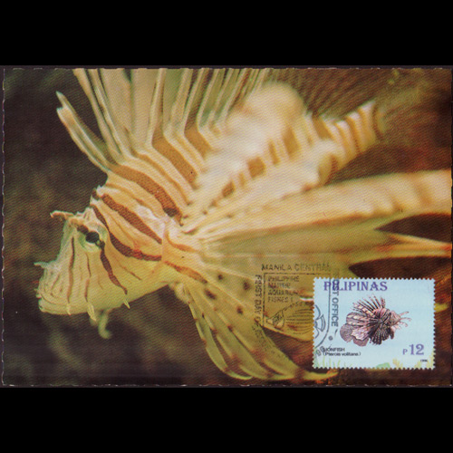 | 说明:贴热带鱼类-狮子鱼1全。首日纪念戳。 |
